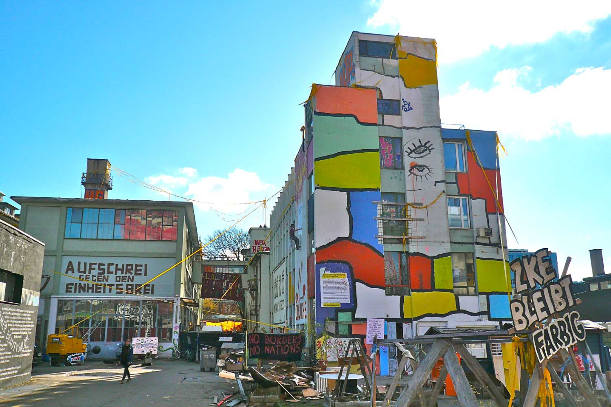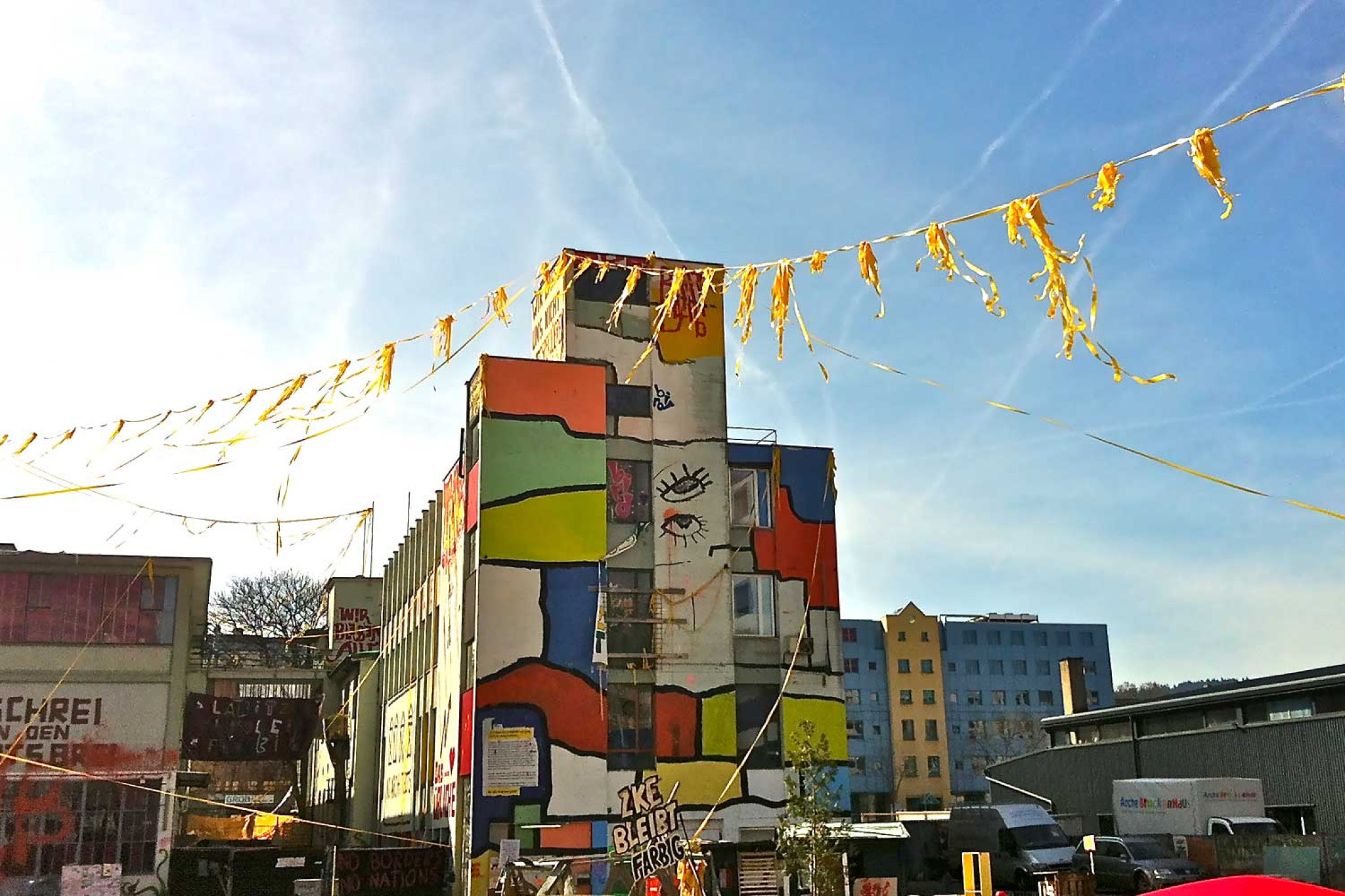 La société Labitzke AG a produit des peintures sur le site Labitzke jusqu'au début des années 90. Puis la production de peintures a été arrêtée. Un agent immobilier a ensuite racheté le site. Au début, il ne s'est guère intéressé au site, mais il était néanmoins intéressé par les revenus locatifs. Des personnes à la recherche de peu de confort mais de beaucoup d'espace ont trouvé un nouveau foyer sur le site Labitzke. Début 2011, la société immobilière Mobimo Holding AG a racheté le site. Dès que le changement de propriétaire a été effectif, la scène squatteuse zurichoise s'est intéressée à l'objet. Mobimo Holding AG a communiqué dans les médias que les squatteurs pouvaient rester pour l'instant. Au fil des ans, un lieu a ainsi vu le jour qui n'était pas seulement un lieu d'habitation. Ce lieu était également un lieu de rencontre où se déroulaient des concerts, des fêtes et des discussions.