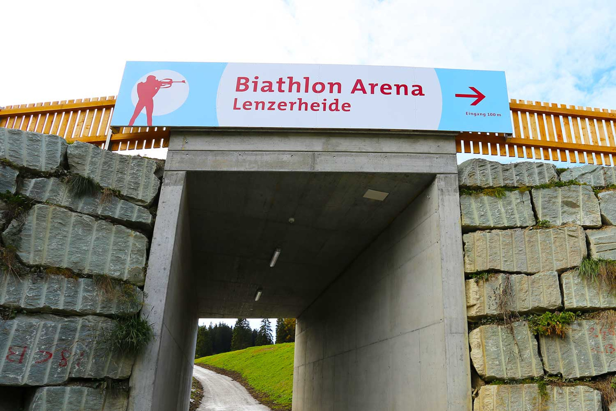 La Biathlon Arena Lenzerheide est la seule installation de biathlon en Suisse à disposer d'une licence B de l'Union internationale de biathlon (IBU). Afin de pouvoir accueillir à l'avenir des championnats du monde et des coupes du monde, la Biathlon Arena Lenzerheide doit toutefois obtenir une licence A.