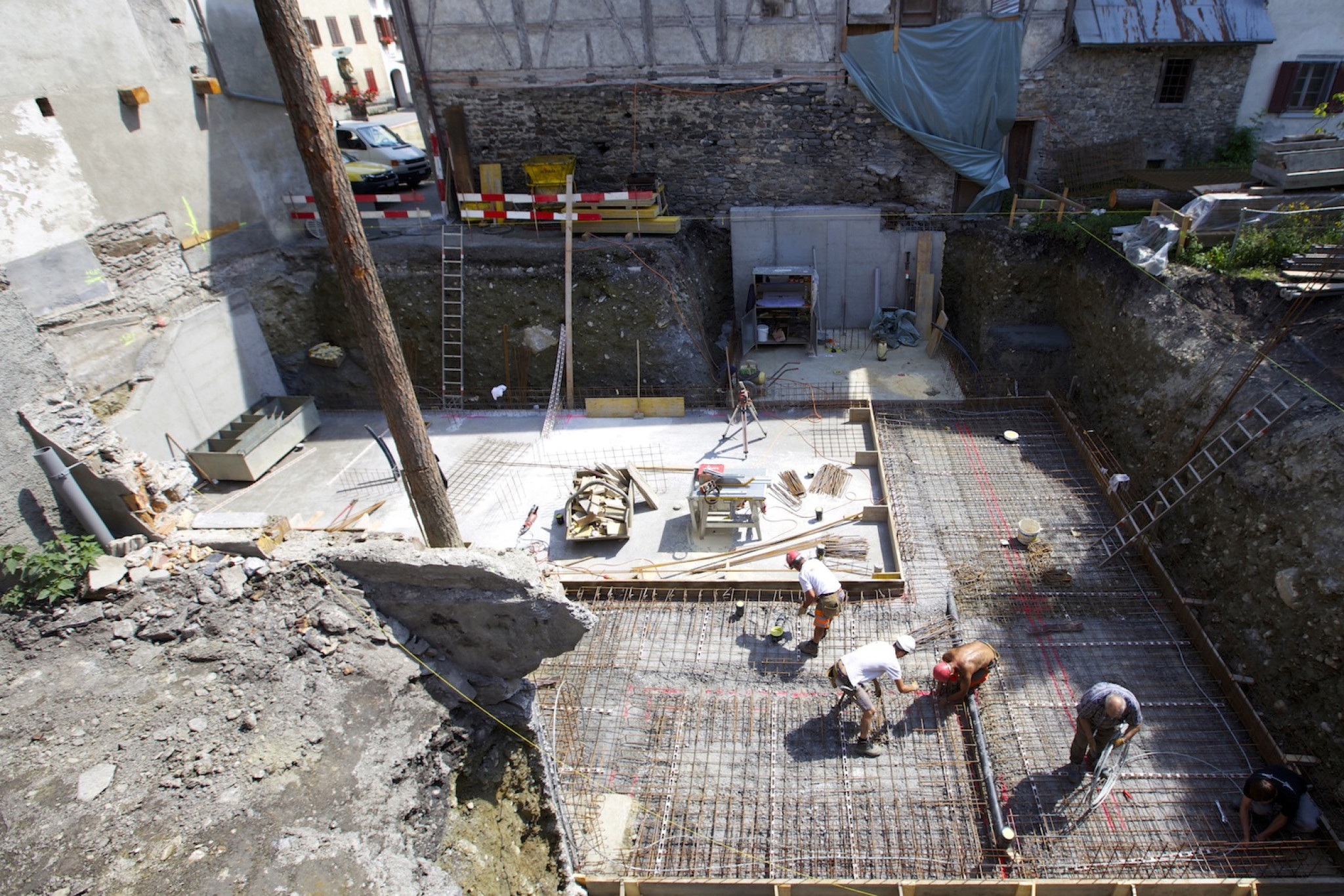 L'architectegrison et professeur à l'EPFZ Gion A. Caminadaa été engagé pour la transformation et l'agrandissement de l'«Engihuus ». Il souhaite créer dans lafuture «Gasthaus am Brunnen» unpetit hôtel de huit lits, un restaurant pour les habitants et les visiteurs, ainsi qu'une salle pour les «bons événements et les rencontres». Afin de fournir les bases nécessaires à l'architecte, la société HMQ AG a d'abord dû mesurer l'« Engihuus ».