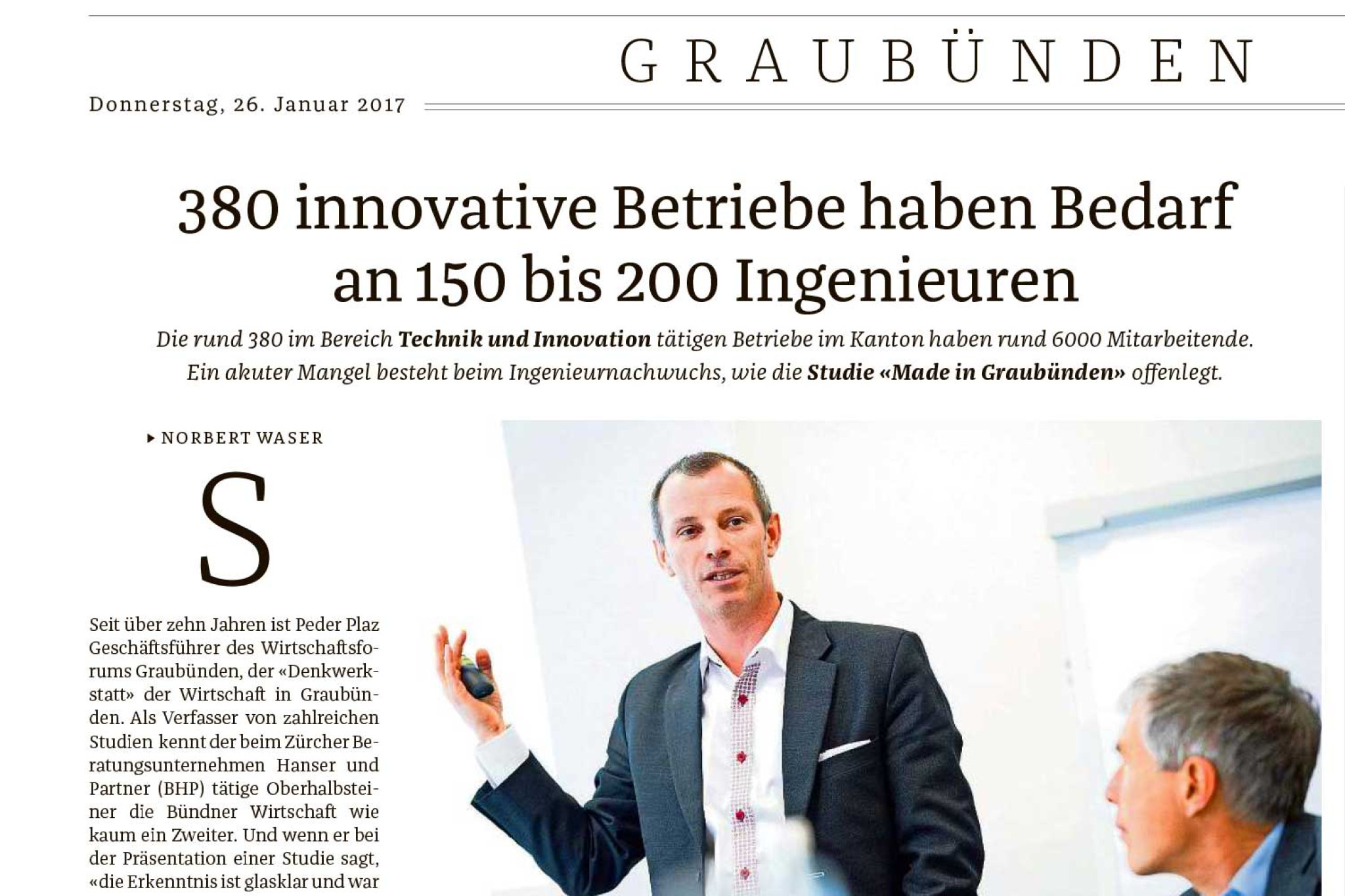Le Bündner Tagblatt a publié le 26 janvier 2017 un article sur l'étude « Made in Graubünden », publiée en décembre 2016 par le Forum économique des Grisons. Dans ce contexte, les sites des entreprises innovantes du canton des Grisons sont également présentés, parmi lesquels HMQ AG.