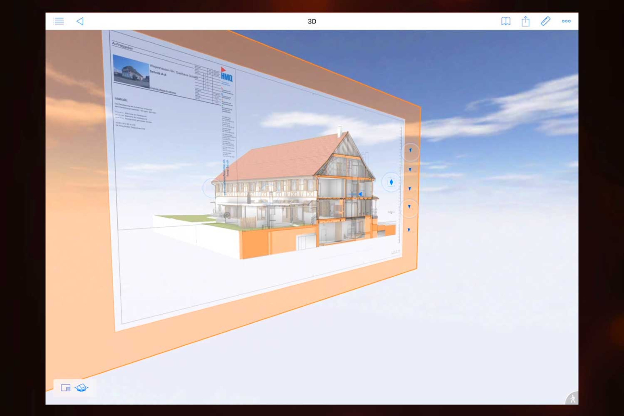 Avec BIMx, les modèles BIM numériques de HMQ AG peuvent être enrichis et ainsi être mis en relation encore plus étroite avec la réalité, l'impression d'espace, la sensation d'espace et l'environnement de l'objet. Le modèle 3D est préparé de manière à ce que les bâtiments puissent être entièrement parcourus sur des appareils mobiles tels que des tablettes ou des smartphones.