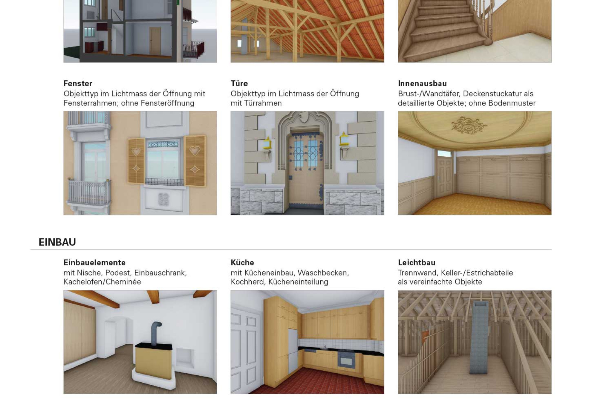 Par conséquent, les modèles 3D intelligents permettent également de générer des plans 2D aux échelles de détail habituelles. Le modèle de HMQ AG offre les niveaux de détail suivants :