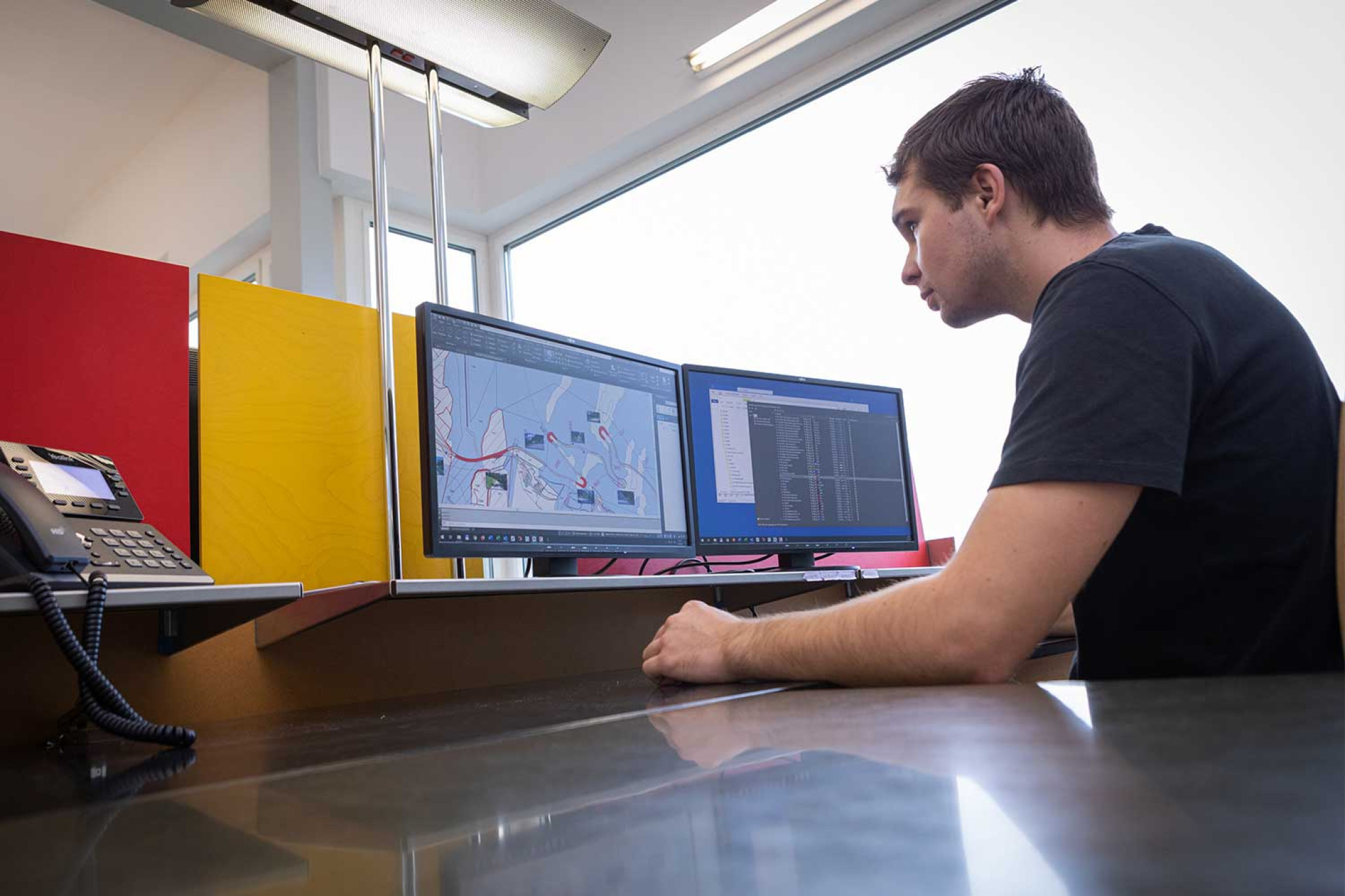 Patrick Kornberger s'engage également en tant qu'expert pour les examens finaux de dessinateur/dessinatrice CFC en génie civil. Son collègue HMQ Michael Meisserfait partie du comité d'examen pour la formation de géomaticien/géomaticienne CFC.